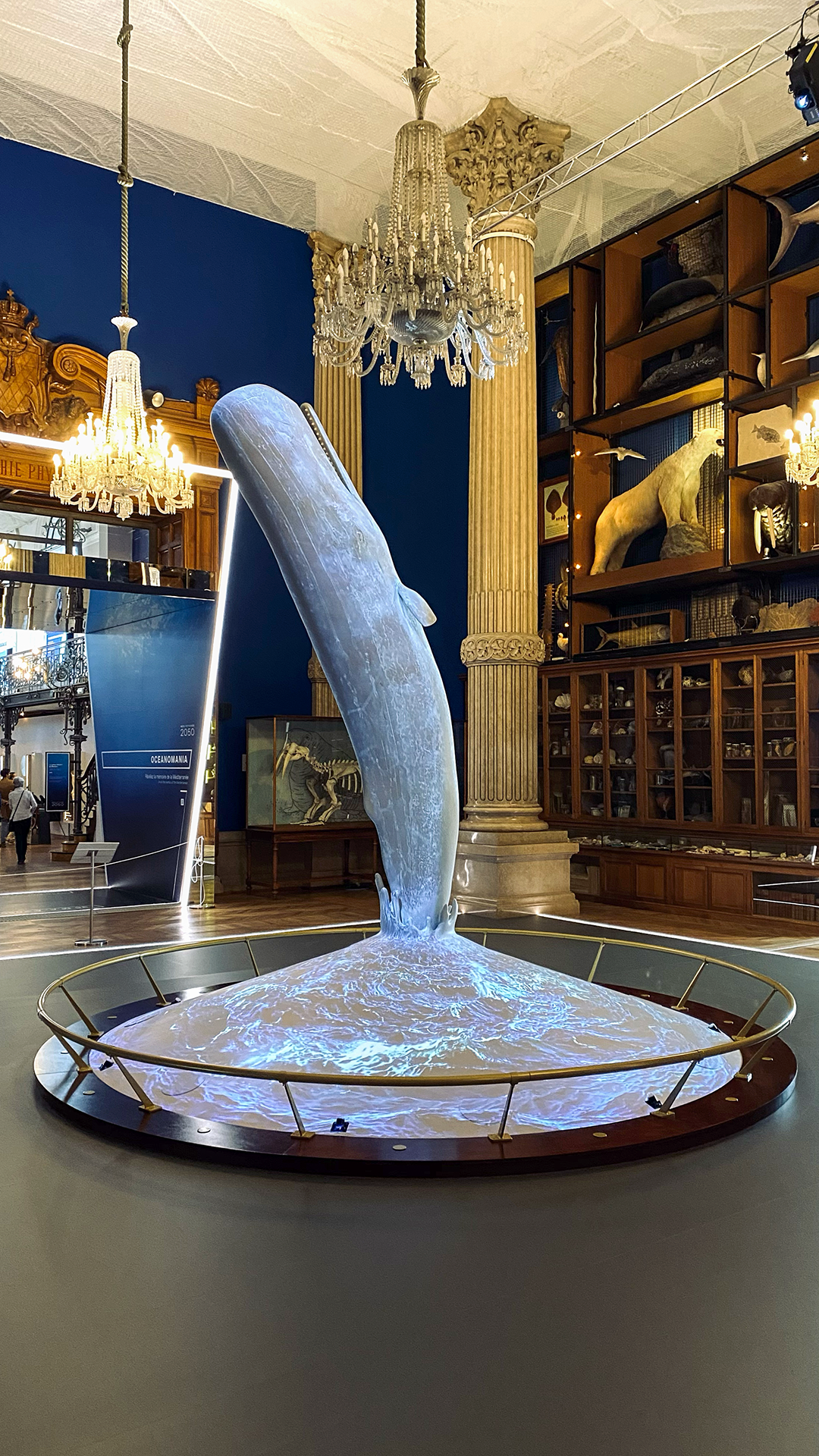 Pour cette exposition, ID Scènes a contribué en réalisant la construction des portiques lumineux symbolisant les transitions temporelles entre les différents univers, ainsi que l’installation technique de la sculpture du cachalot dans l’espace Oceanomania. Ces éléments scénographiques, conçus par DBU (Dreamed by Us), enrichissent l’expérience immersive proposée aux visiteurs.