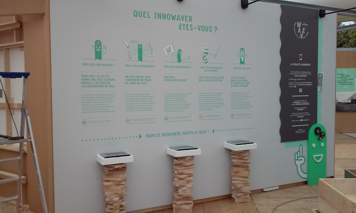 WAVE est une exposition imaginée par BNP Paribas. Cette exposition est un lieu d’échange et de partage qui explore les nouveaux courants d’ingéniosité qui traverse notre planète. Mouvement des makers, économie du partage, co-création, économie circulaire et inclusive sont expliqués et donnés à voir au travers de 20 reportages photos et vidéo-graphiques.